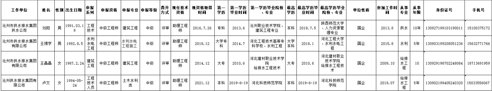 2022專業(yè)技術(shù)人員申報副高級工程師職稱的公示